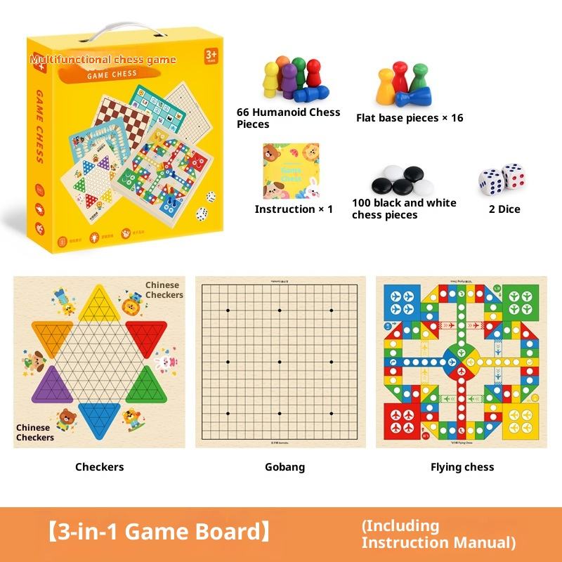 Juego de Mesa Educativo Multifuncional, Ajedrez Divertido de Madera, Multijuego en Uno, Ajedrez Volador para Niños