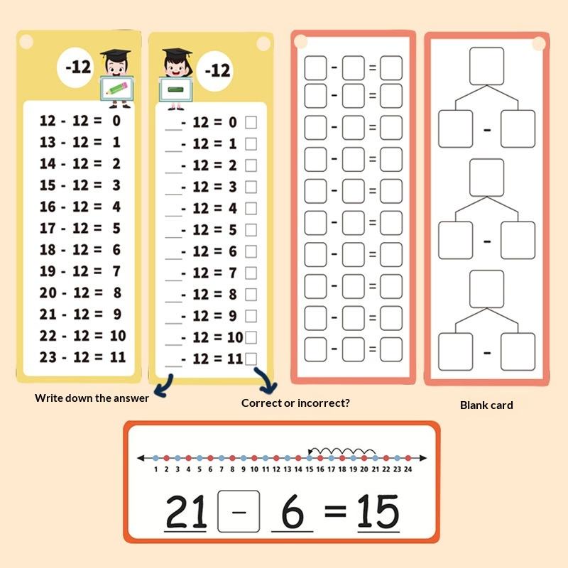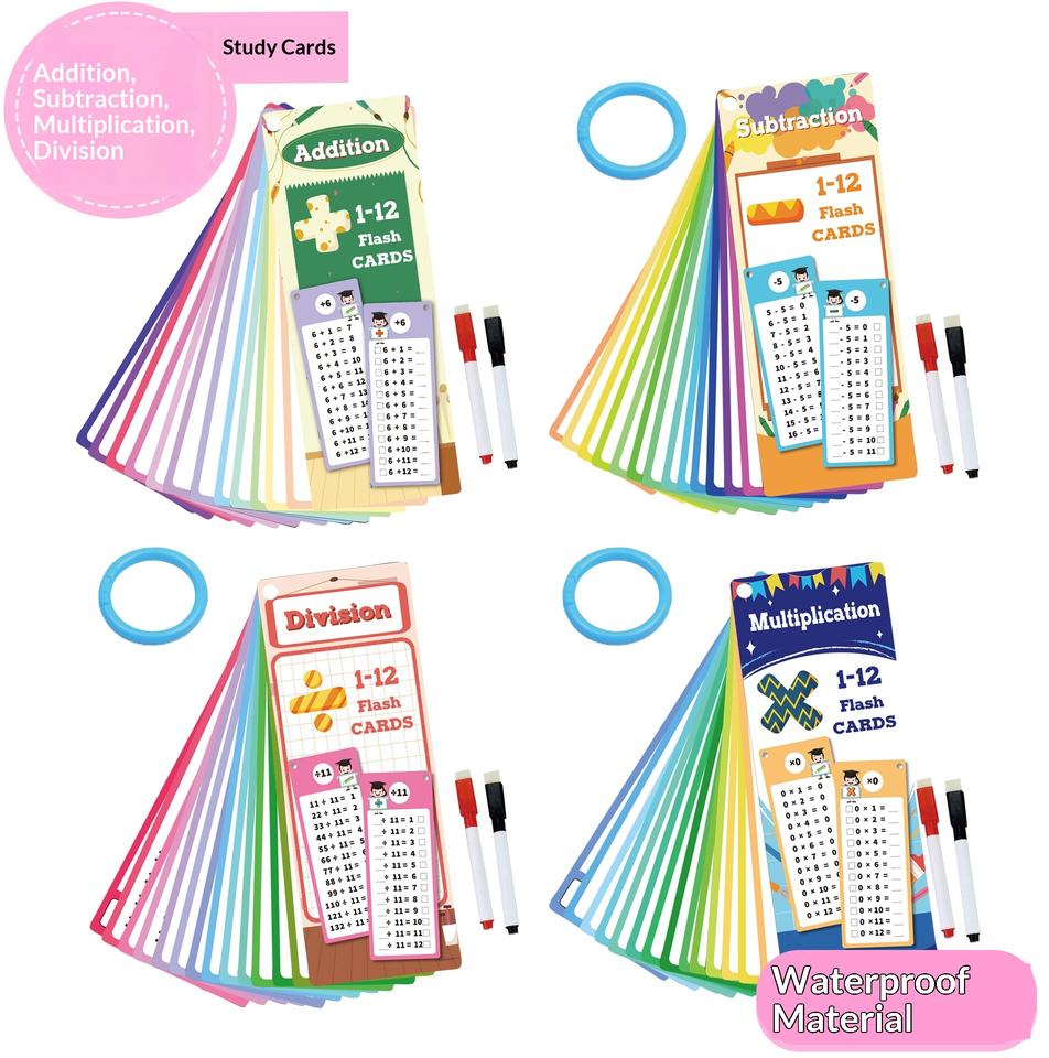 Tarjetas Educativas de Matemáticas para Sumas, Restas, Multiplicaciones, Divisiones, Tarjetas de Aprendizaje para Niños con Anillos y Bolígrafos