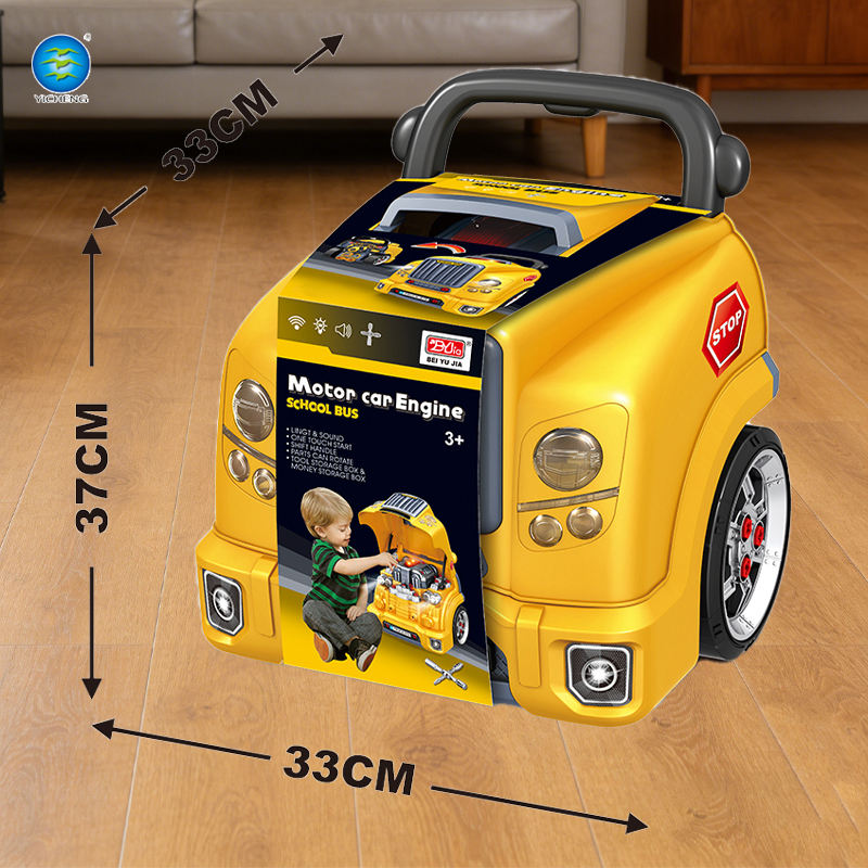 Juguete Educativo Multifuncional de Ensamblaje, Juego de Herramientas de Reparación e Ingeniería, Autobús Escolar de Simulación, Alcancía de Plástico, Cumple con la Norma EN71
