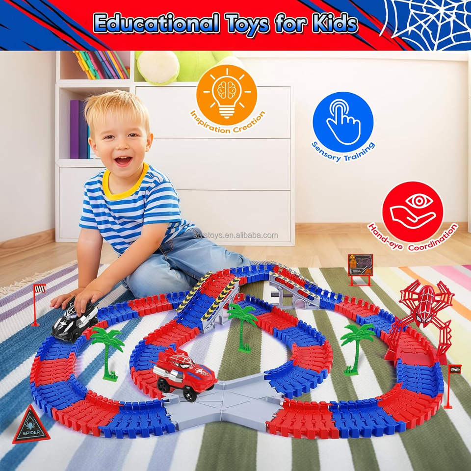Description:212 PCS Race Track Toys with 2 Electric Spider Cars
