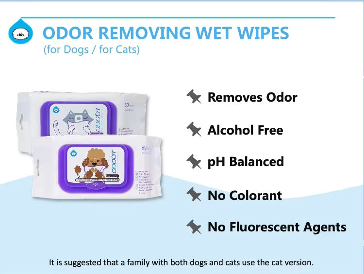 Toallitas Húmedas Eficaces para Eliminar el Olor para Perros y Gatos, Sin Fragancia, 50 Toallitas por Paquete, Cuidado de Mascotas a Base de Plantas