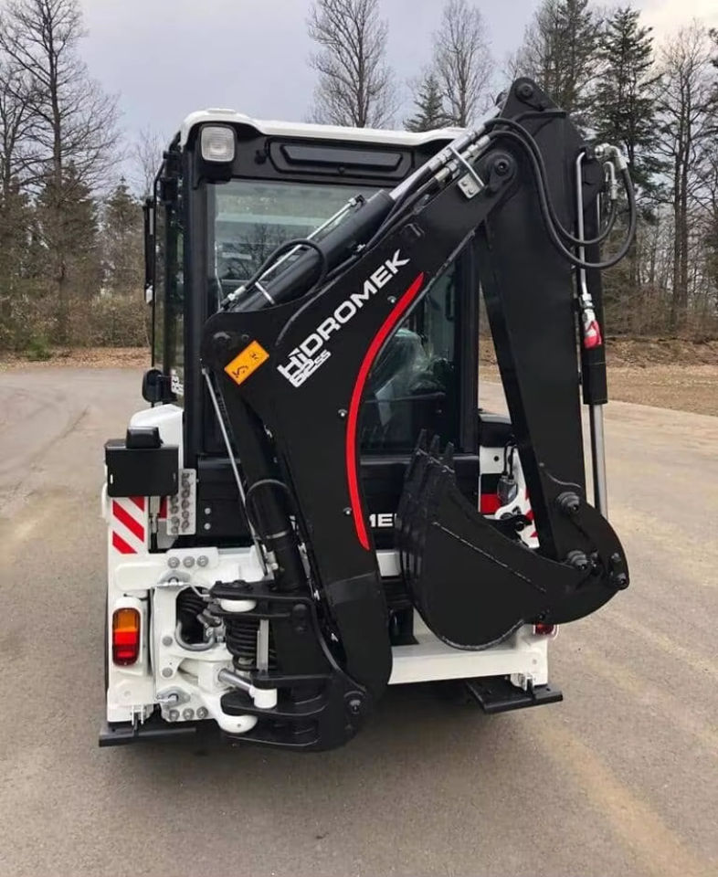 Eficiente Retroexcavadora de Ruedas Hidromek 62SS, Minicargadora con Capacidad de Carga de 2 Toneladas, Motor Diésel Perkins, Bomba de Caja de Cambios Eaton