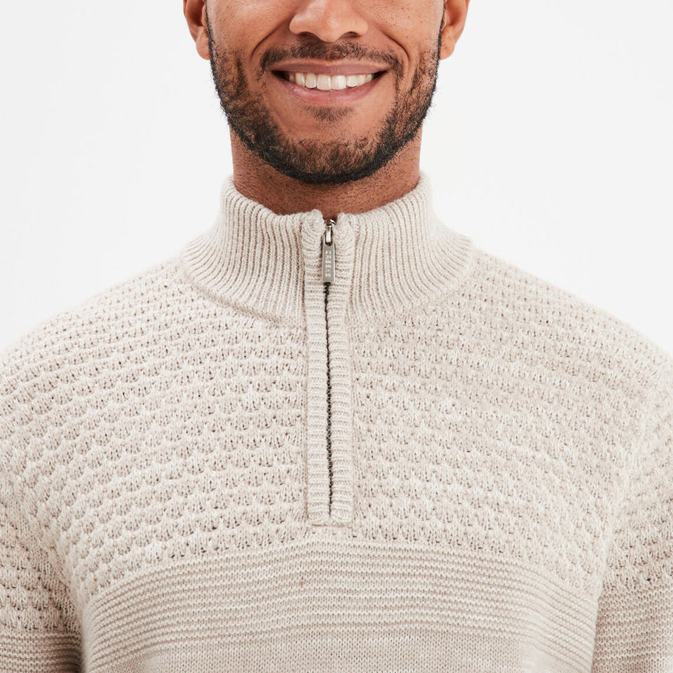Suéter de Hombre con Cuello Camionero, Gris Oscuro, con Rayas Acanaladas, Cierre de Cremallera, Secado Rápido, Transpirable, Fácil de Combinar