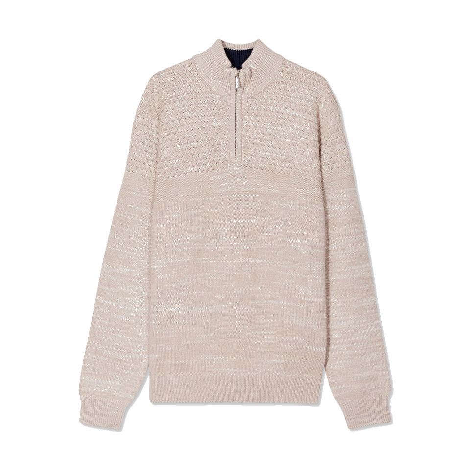 Nombre del Producto:Suéter de Hombre Gris Oscuro con Cuello Trucker Acanalado