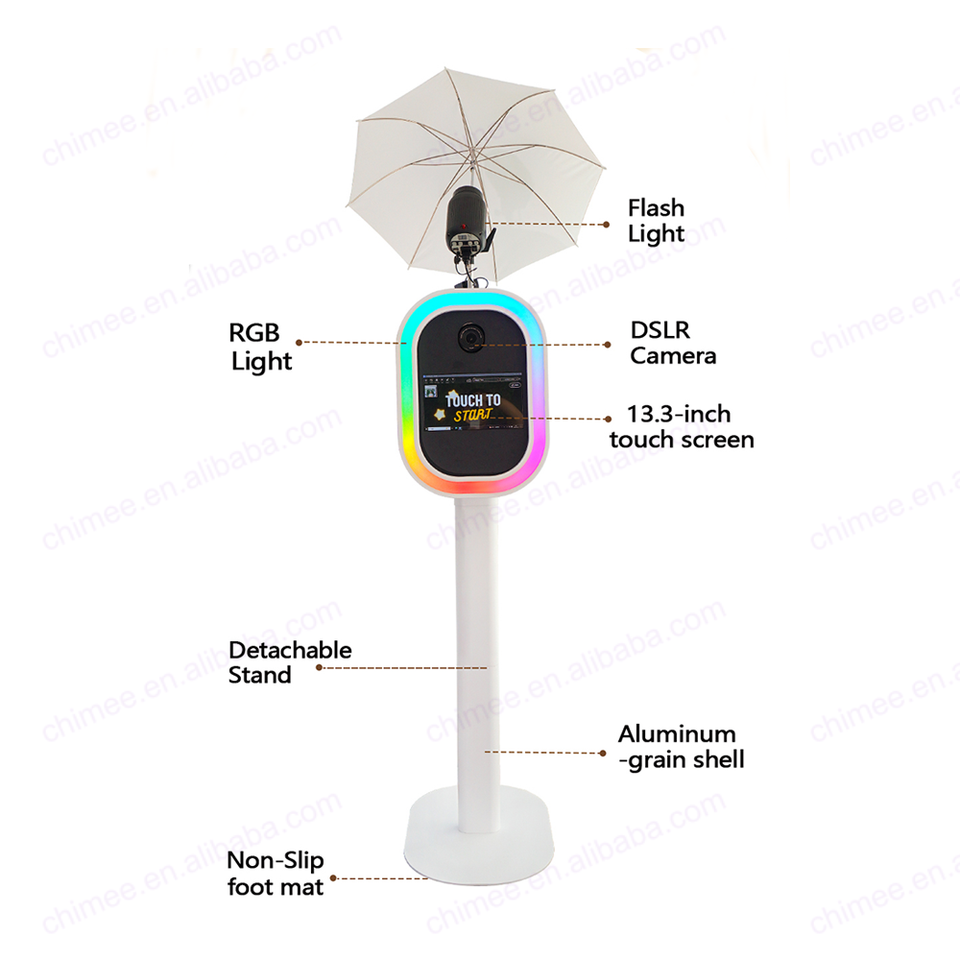 Configuración sin esfuerzo Oval DSLR Photobooth Shell 13,3 "Pantalla táctil Photo Booth Impresora instantánea Mini PC Adaptado a Party Photo Booth