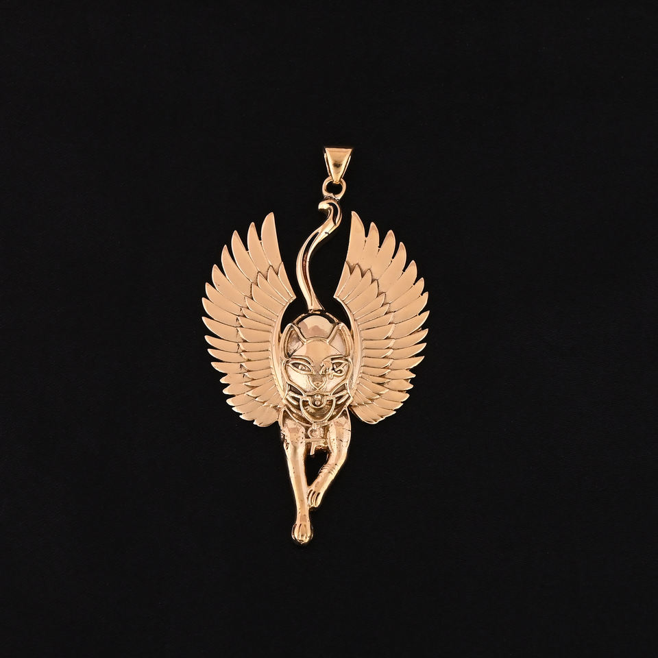 Nombre o palabras:Colgante de Moda Gato Egipcio Chapado en Oro, Tamaño 70x40MM para Mujer