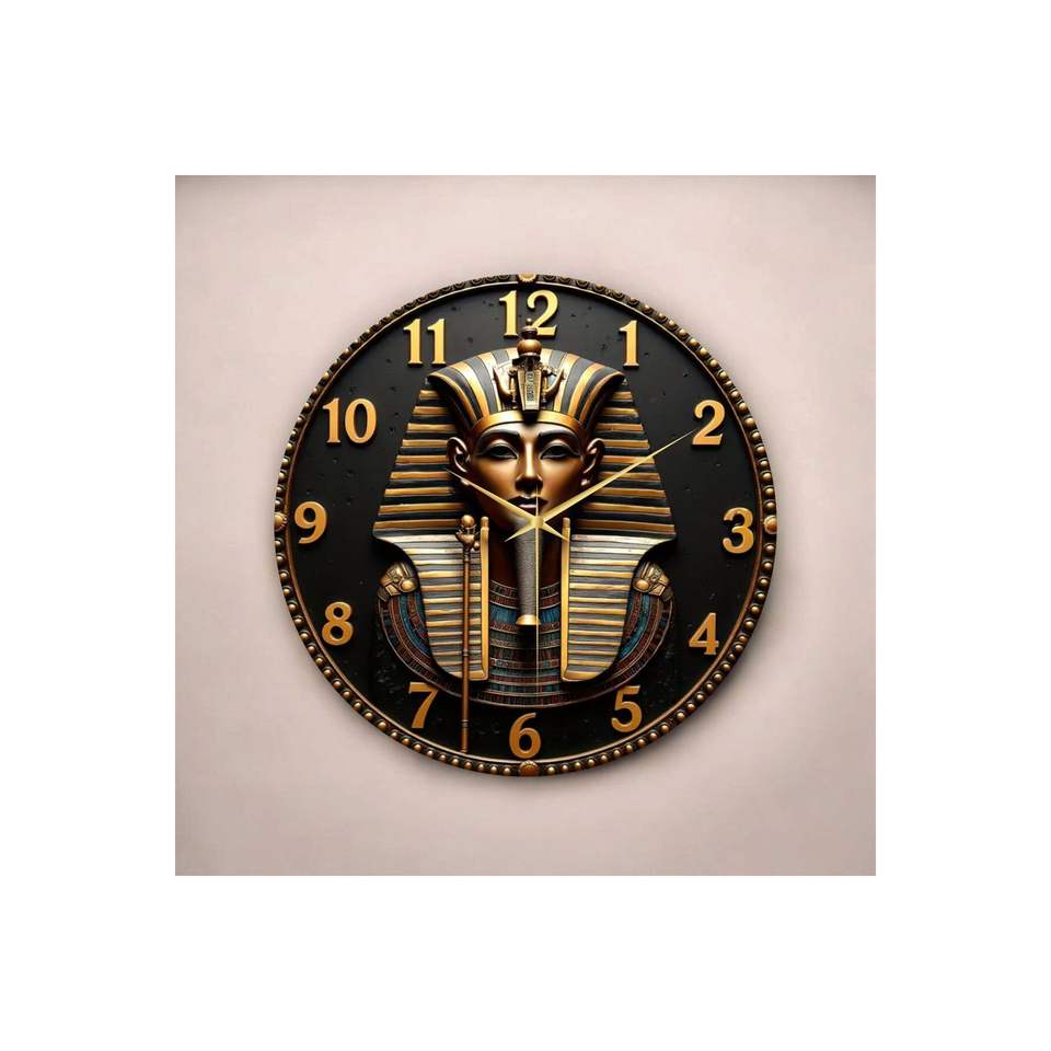 Reloj de Pared de Madera Clásico con Diseño de Faraón Egipcio, Números Impresos Coloridos, Diseño Silencioso, 45x45cm, Origen TR