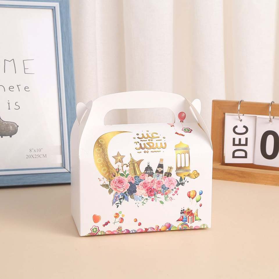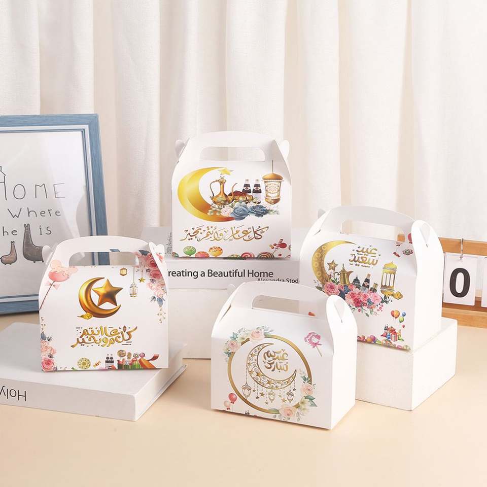 Cajas Portátiles para Empacar Pasteles Eid Mubarak, Caja de Regalo Ramadan Kareem con Asa, Recuerdo Musulmán, Decoración DIY para Fiestas Islámicas