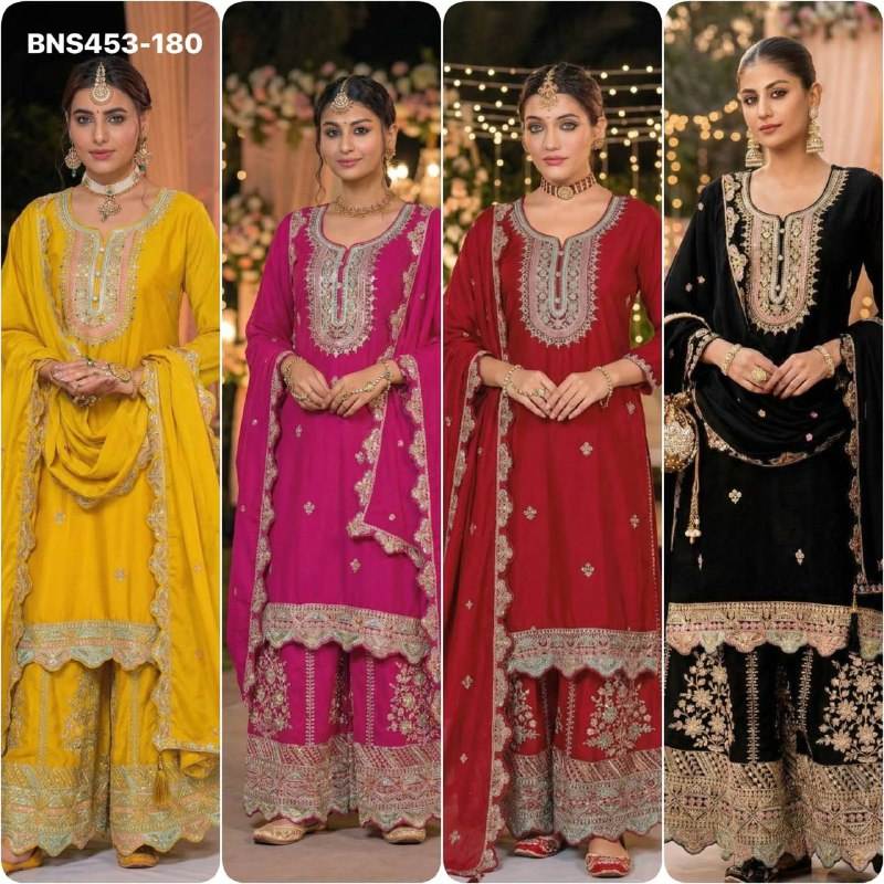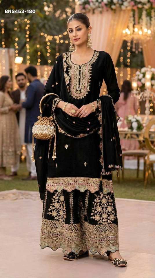 Nombre del Producto:Traje Salwar de Chinon Pesado Especial para Eid con Bordado