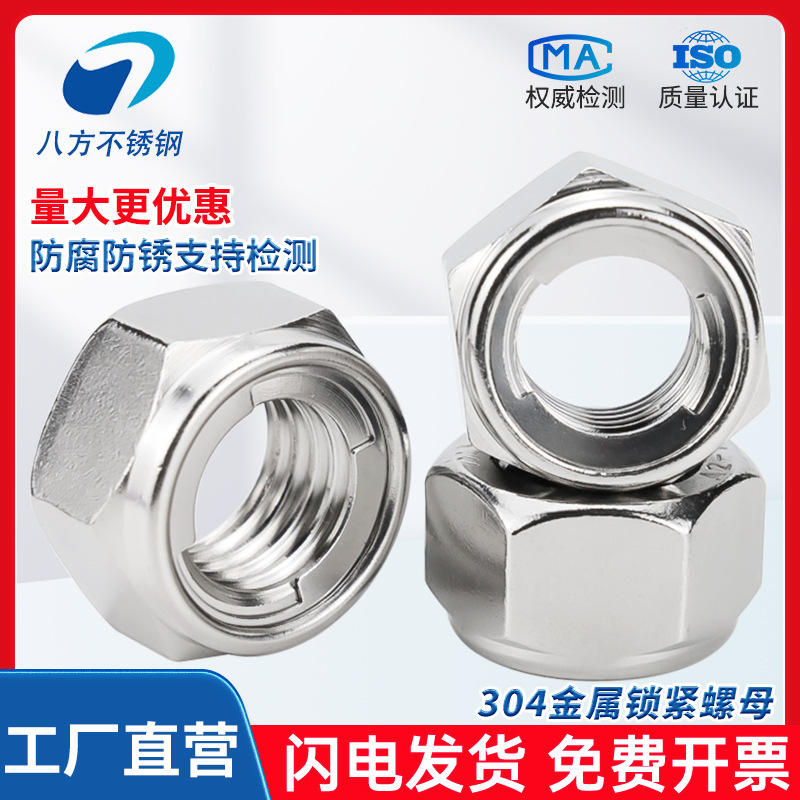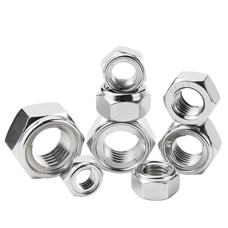 Eight Directions Stainless Steel Hex Locking Nut M5 M6 M8 M10 Grade B A2-70 Bright Finish Fitness Equipment