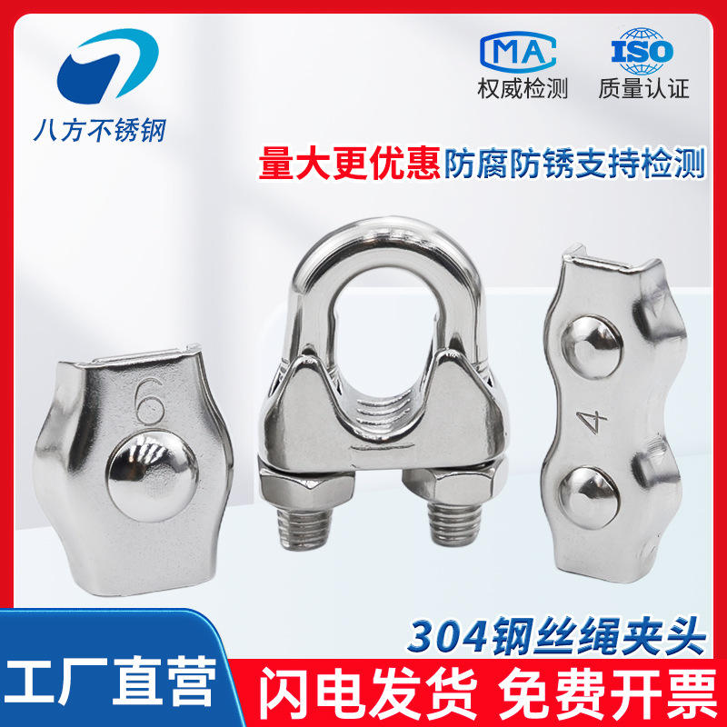 Eight Directions Wire Rope Clip 10mm Stainless Steel U-Shaped Clamp Locking Device General Industry Use