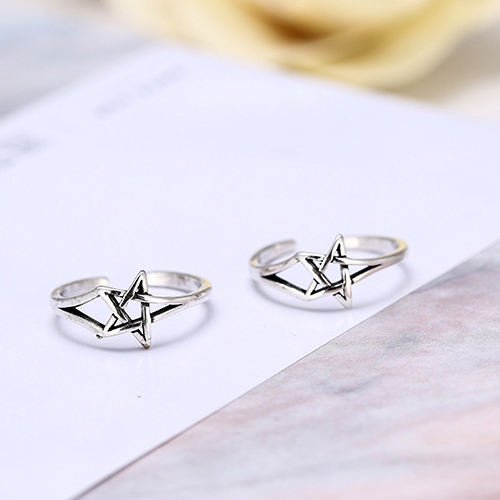 Anillo Abierto de Pentagrama Clásico Ajustable de Plata al 80%, Anillo de Moda para Mujer para Fiestas y Regalos