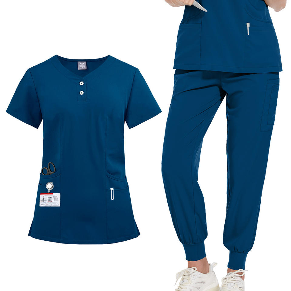 Material elástico de secado rápido con múltiples bolsillos Uniformes de scrubs