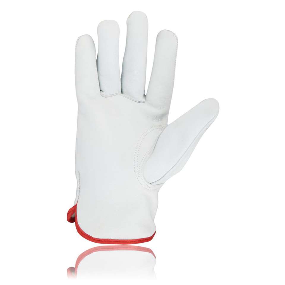 Guantes DE TRABAJO elásticos Keystone Thumb Driver, características antideslizantes anticortes, guantes de seguridad rojos de cuero de grano de cabra blanco Natural, trabajo