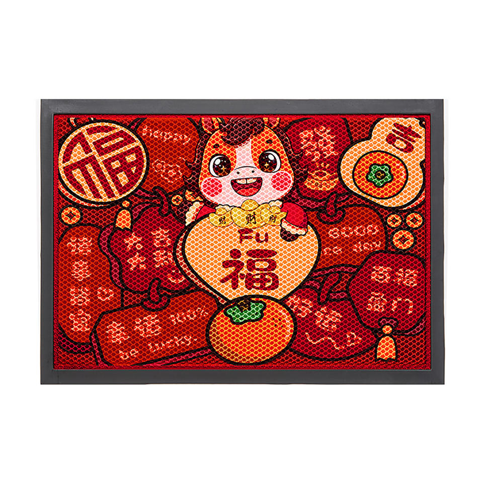 Felpudo Elástico Rectangular de Poliéster con Diseño Tradicional Chino Rojo para el Año Nuevo, Atrae la Buena Fortuna Inmediatamente