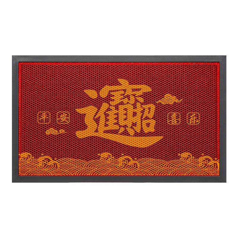 Tapete Rectangular Elástico para Entrada, Color Rojo Festivo, Antideslizante, Lavable a Máquina, de Poliéster, con Diseño de Nudos Alegres y Tranquilos