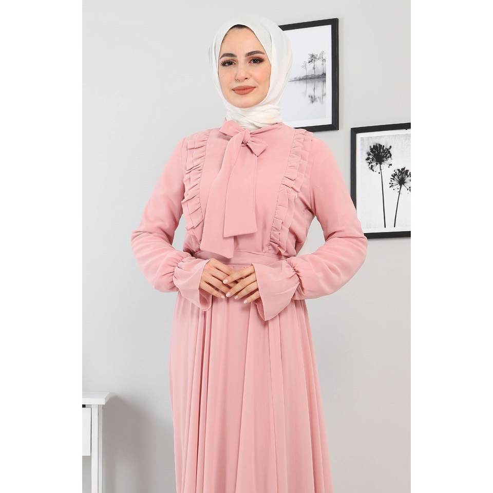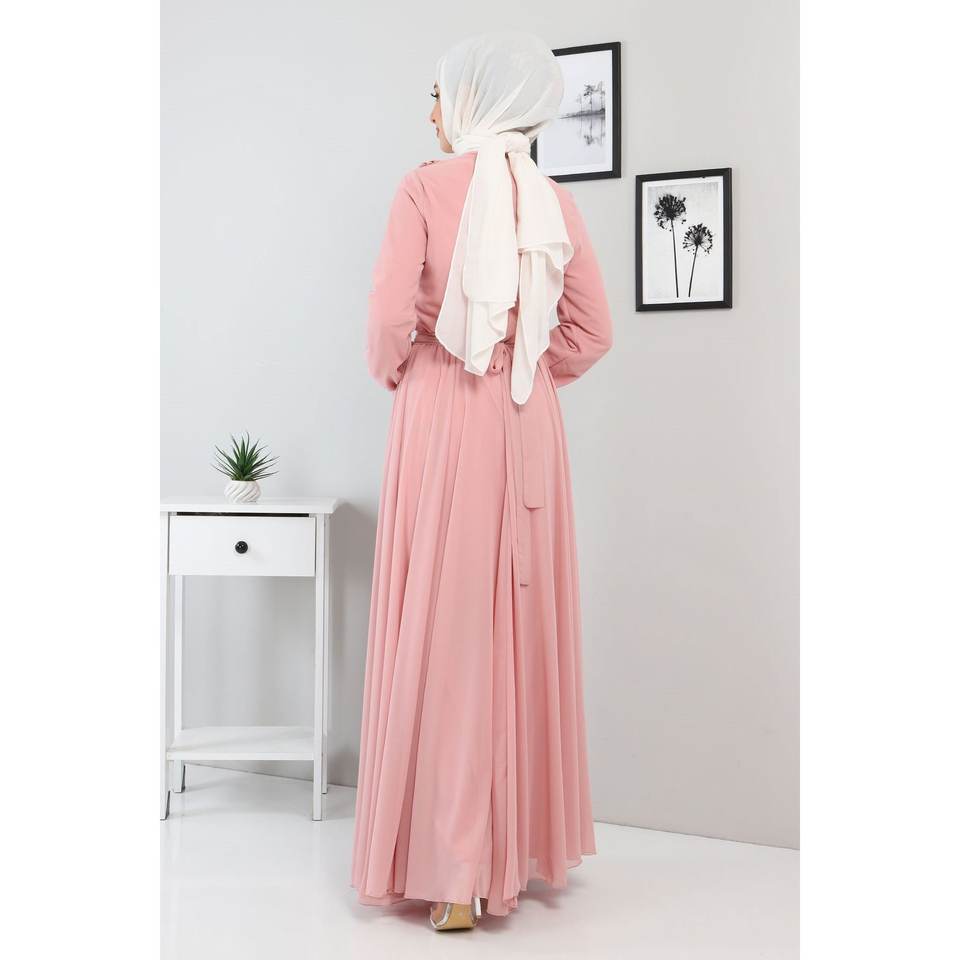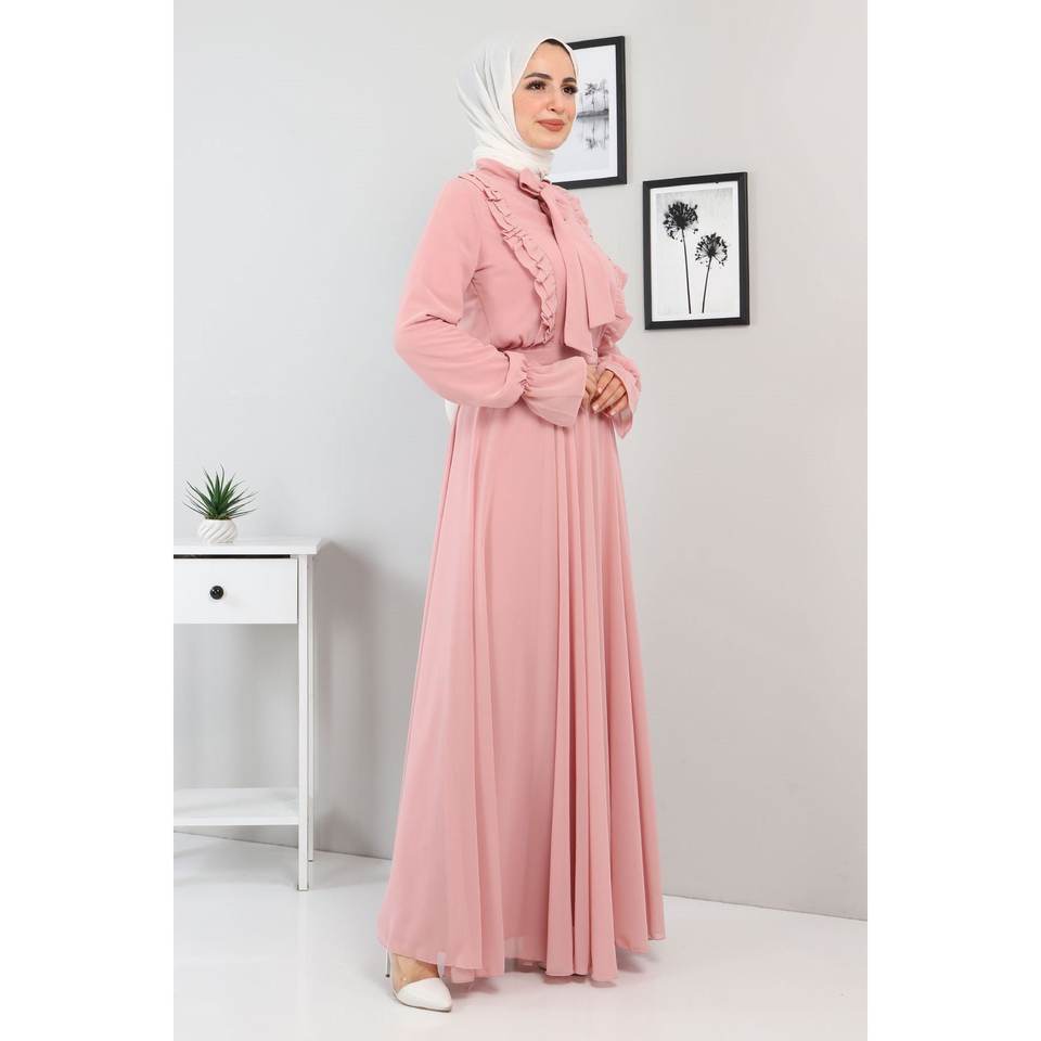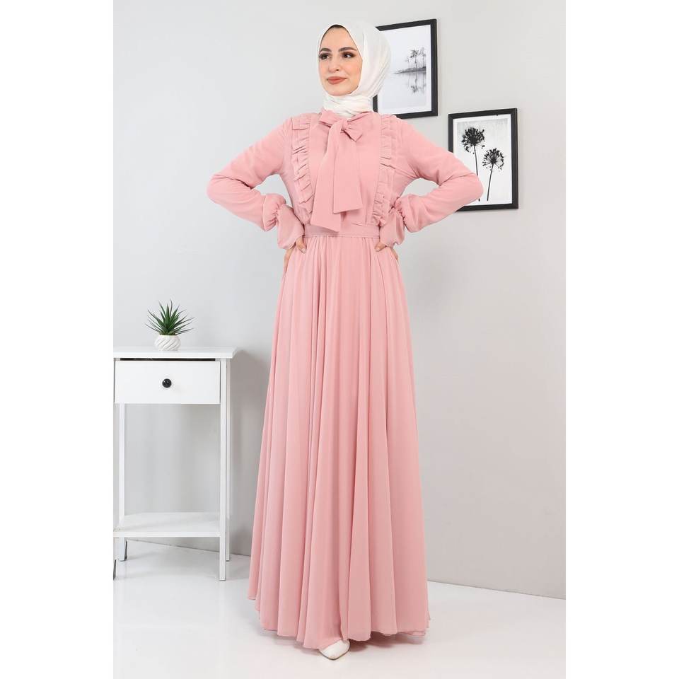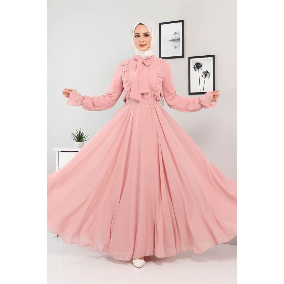 Vestido de Noche Casual con Cintura Natural, Estilo A-Line, Manga Larga, para Fiesta o Dama de Honor, Tallas XL XXL, Poliéster Liso Teñido, Mega Merchant