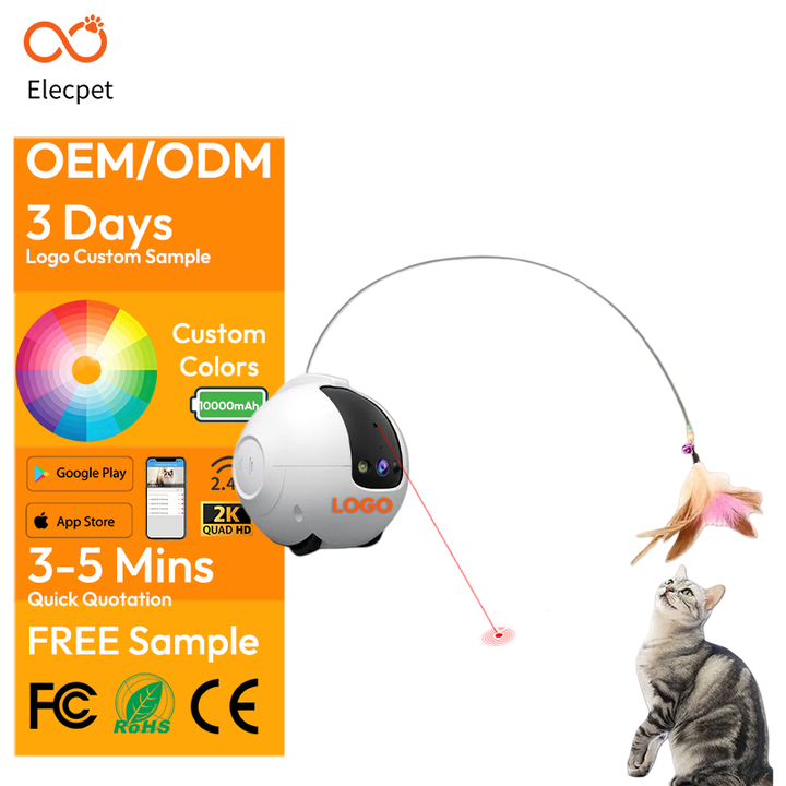 Elecpet Robot de Compañía Inteligente con IA de 10000 mAh con Cámara de 2K, Juguete Láser con Pluma, Compañero Interactivo Automático para Mascotas