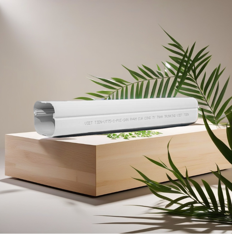 Cubierta de Tubería para Aire Acondicionado Eléctrico, PVC Blanco Ecológico, Serie VT75-1, Marca VIET TIEN, Minimalista, de Alta Gama, de Cobre