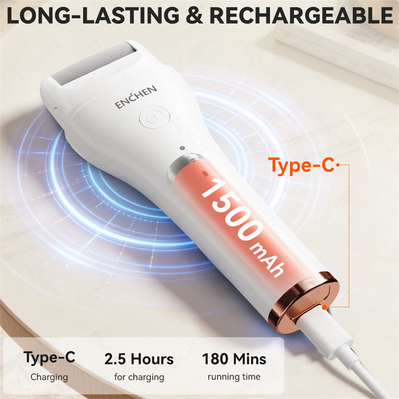 Removedor de Callos Eléctrico Recargable por USB con 3 Cabezales, Resistente al Agua IPX6, 2 Velocidades Ajustables, 1 Año de Garantía