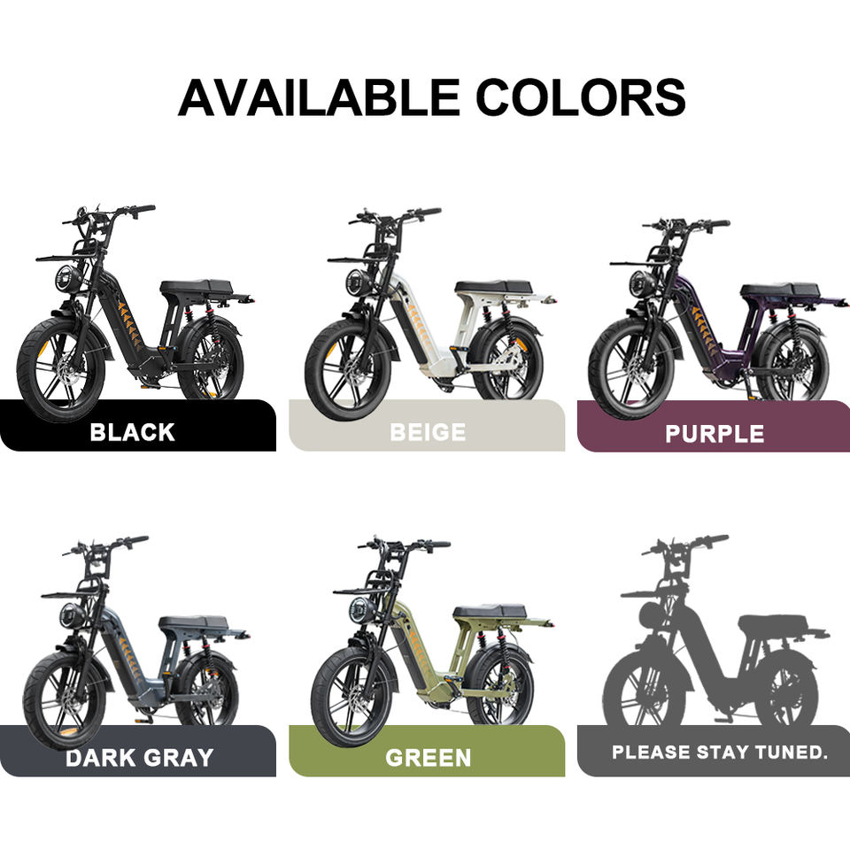Bicicleta Eléctrica D50 250W 48V 18.2AH con Llantas Gruesas, Frenos de Disco Dobles, 50 km de Autonomía, Portaequipajes Delantero, para Viajes de Corta Distancia
