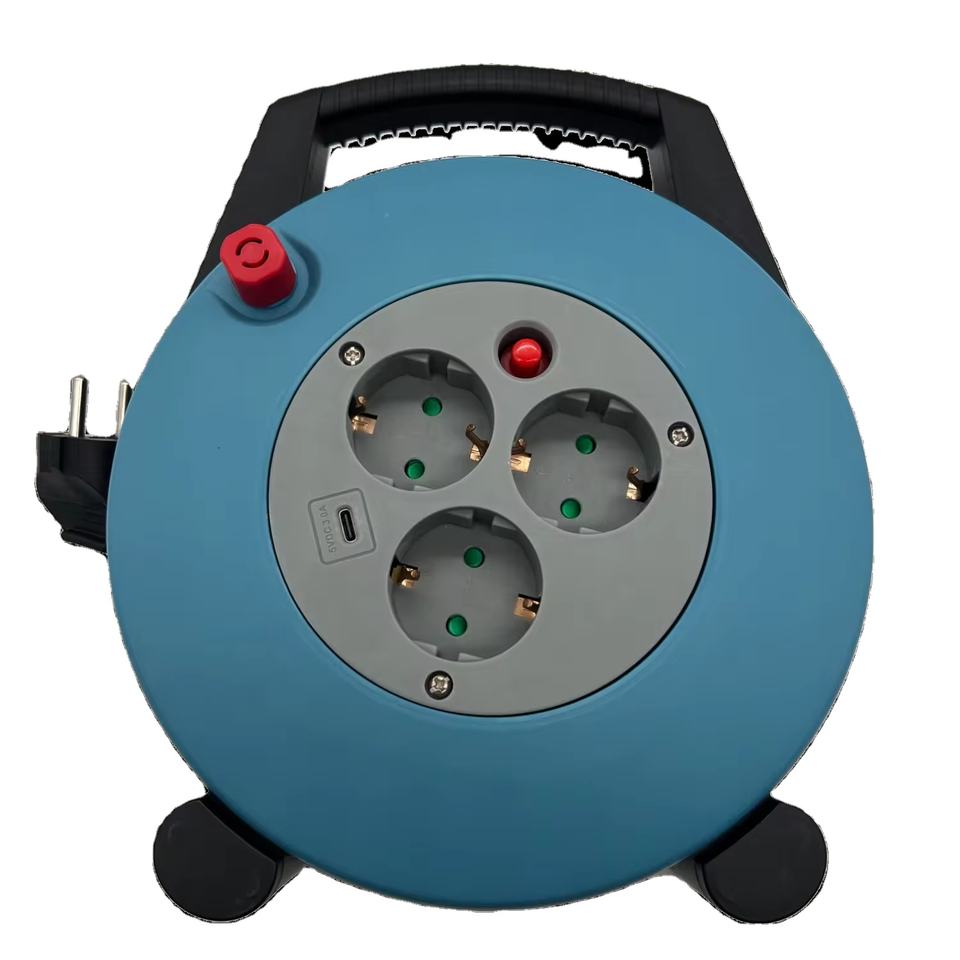Cable eléctrico 3M Color Azul USB C 3 Salida UE Multi-enchufe con Cables de extensión de interruptor Carrete redondo retráctil tipo A tipo C
