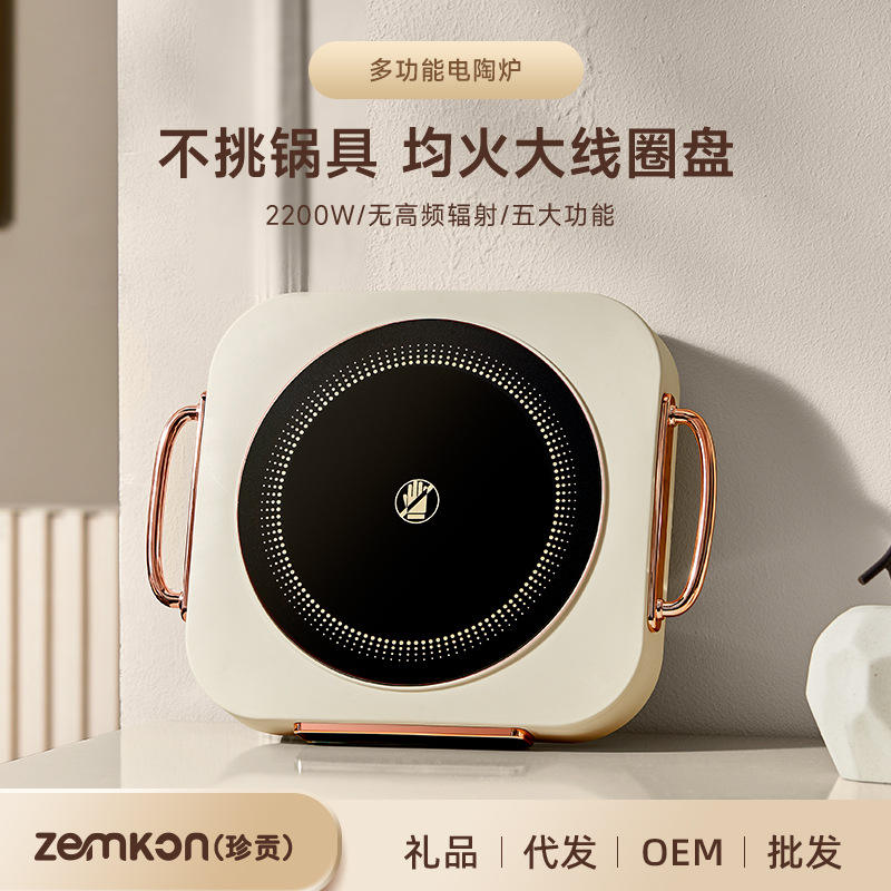 Placa de Cocina Eléctrica de Cerámica de 2200W con Calentamiento por Infrarrojos, Control Táctil, Superficie Lisa Blanca, Hornilla Individual