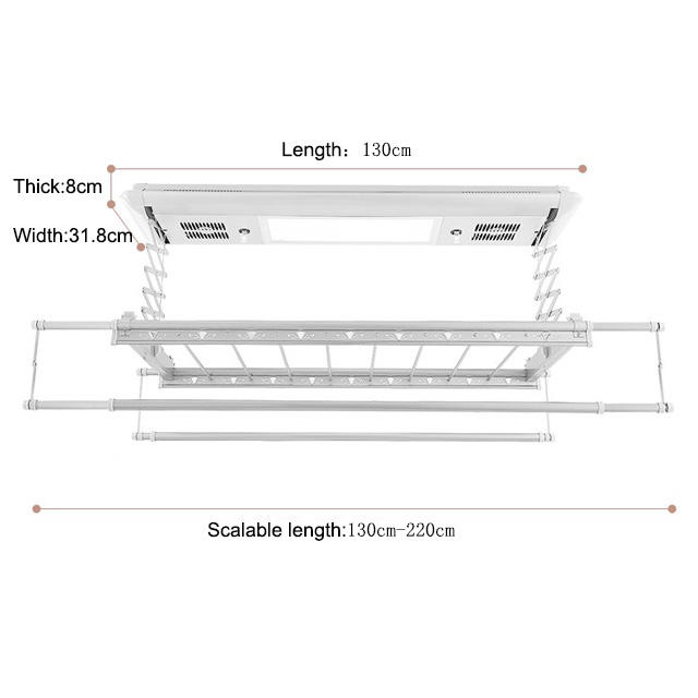 Tendedero de ropa plegable eléctrico con luz UV, colgador de techo de cuerpo de aluminio completo para uso en balcón