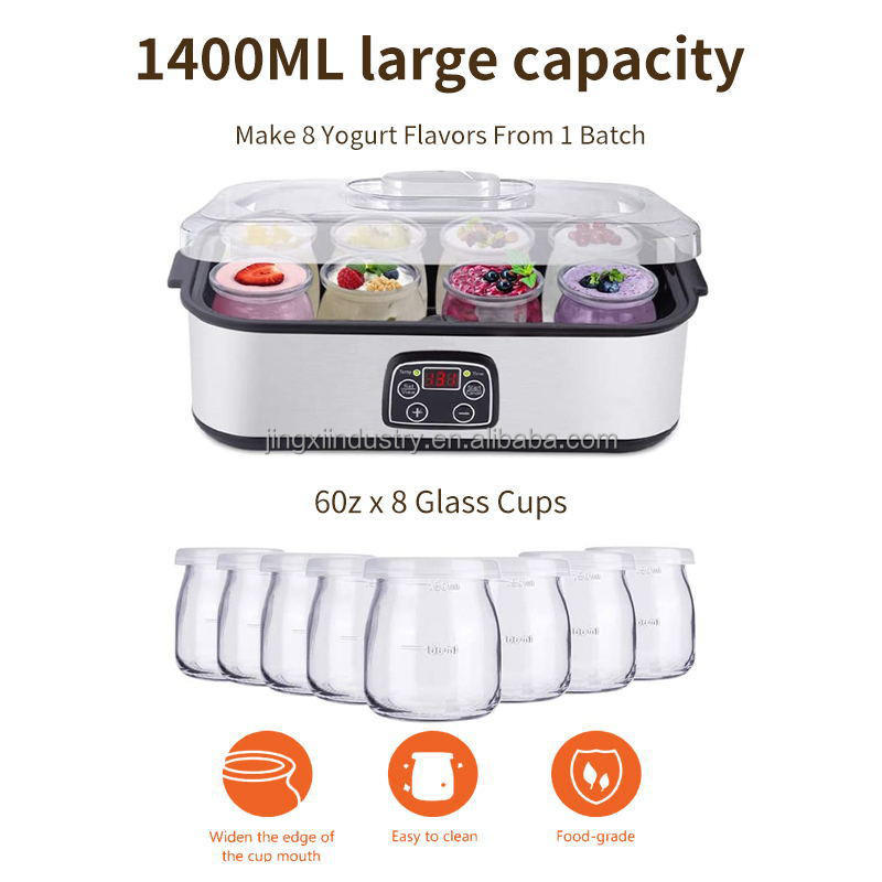 Máquina para Hacer Yogur Eléctrica Digital Automática con Control de Temperatura Constante a 42 °C, Control Táctil, Función de Temporizador, Capacidad para 8 Tazas, para el Hogar