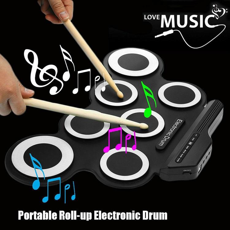 Kit de práctica de batería digital enrollable con 7 pads táctiles sensibles.