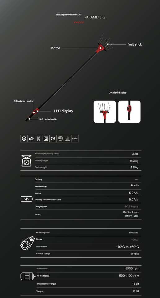 Máquina recogedora de frutas extensible eléctrica Componentes centrales Motor Herramienta de cosecha de aceitunas eficiente Máquina recogedora de aceitunas