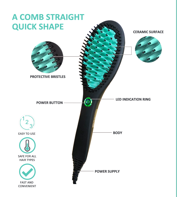 Características:Cepillo de la enderezadora del pelo