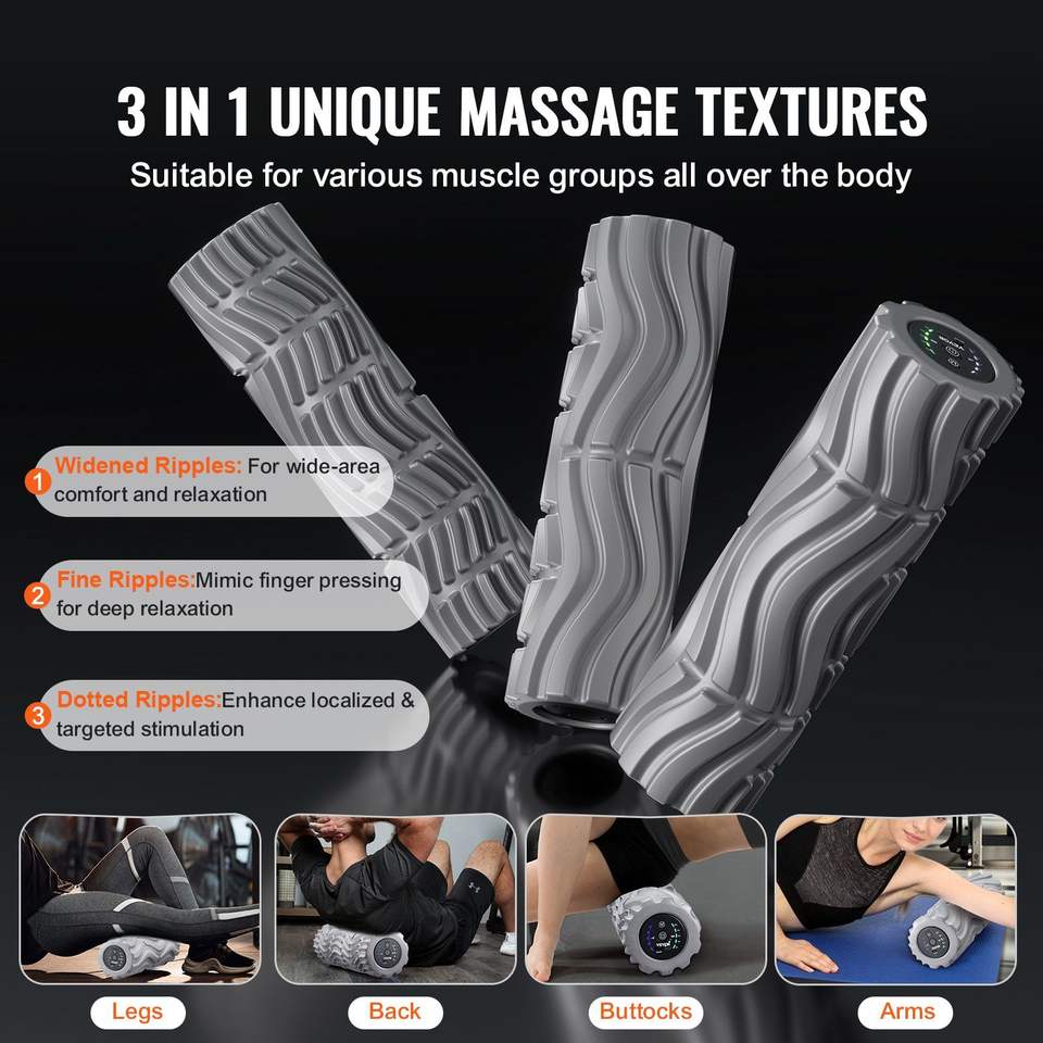 Rodillo eléctrico de espuma con 5 intensidades y 3 frecuencias, rodillo vibratorio para mayor comodidad y alivio