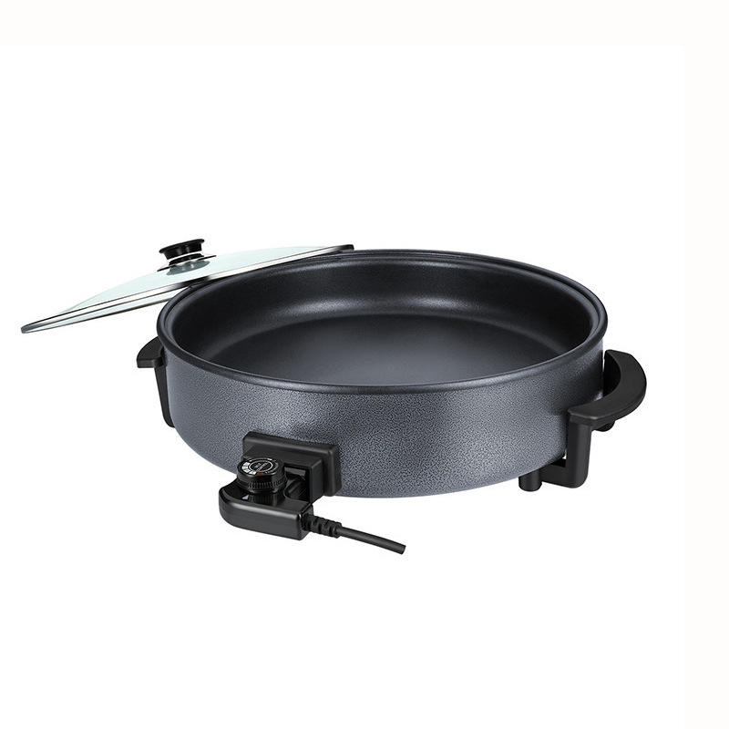 Sartén Eléctrica Antiadherente Redonda de 4.1-6L con Control Mecánico para Pizza, Vapor, Fritura y Salteado