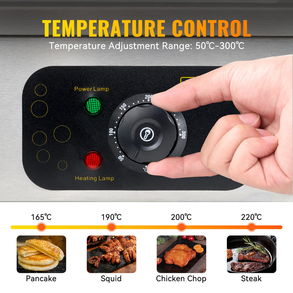Característica:Superficie de cocción antiadherente plana abierta de 180 grados, Control de temperatura ajustable con pantalla digital, Limpieza fácil, BBQ de la familia, Antiadherente