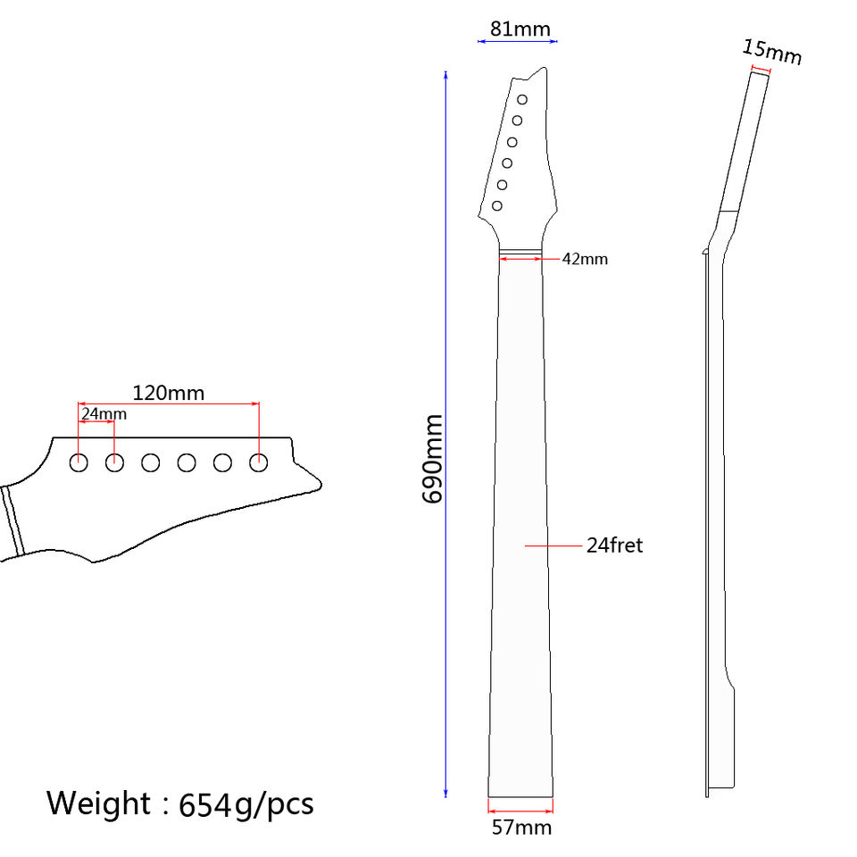 Cuello de guitarra eléctrica 24 trastes Reemplazo de diapasón de palisandro de arce para piezas de guitarra de estilo Ibanez Negro