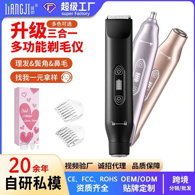 Recortadora de pelo eléctrica 3 en 1 con pantalla LED para mujeres y hombres, afeitadora corporal, depiladora de vello púbico, funciona con batería