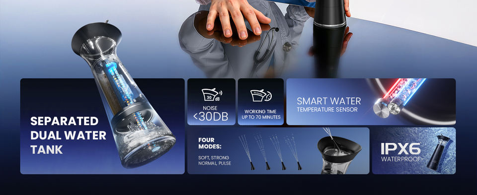 Kit de limpieza de oídos eléctrico portátil con tanque dual separado, resistente al agua, elegible para FSA/HSA, ergonómico, para cuidado personal en casa