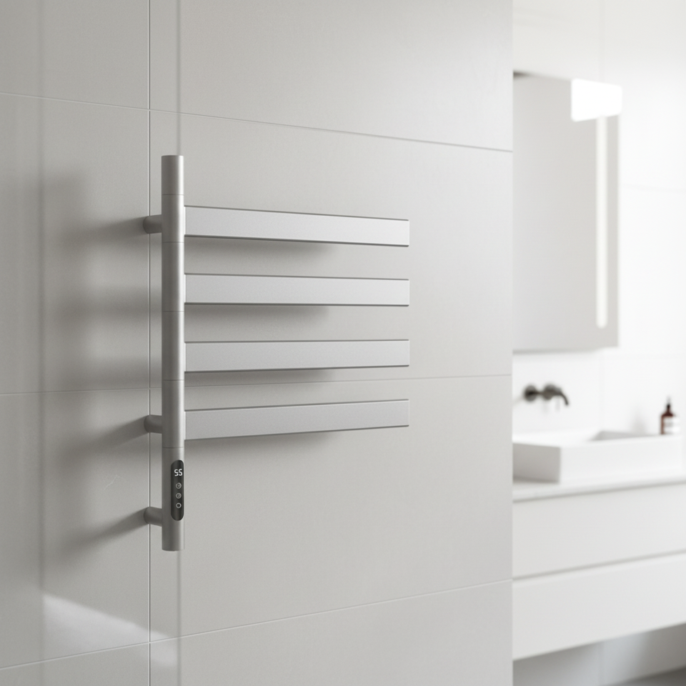 Toallero Eléctrico Calefactado de Acero Inoxidable, Toallero Doble de Lujo Montado en la Pared con Secador para Baño y SPA