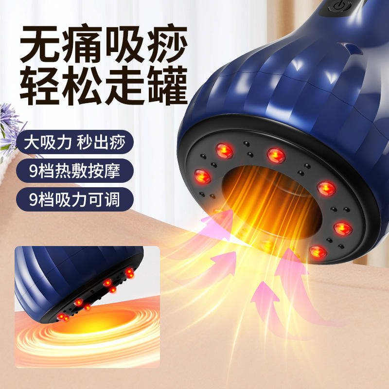 Dispositivo de ventosas deslizantes con calefacción eléctrica, recargable, azul, con control de temperatura, para masaje meridiano y terapia corporal