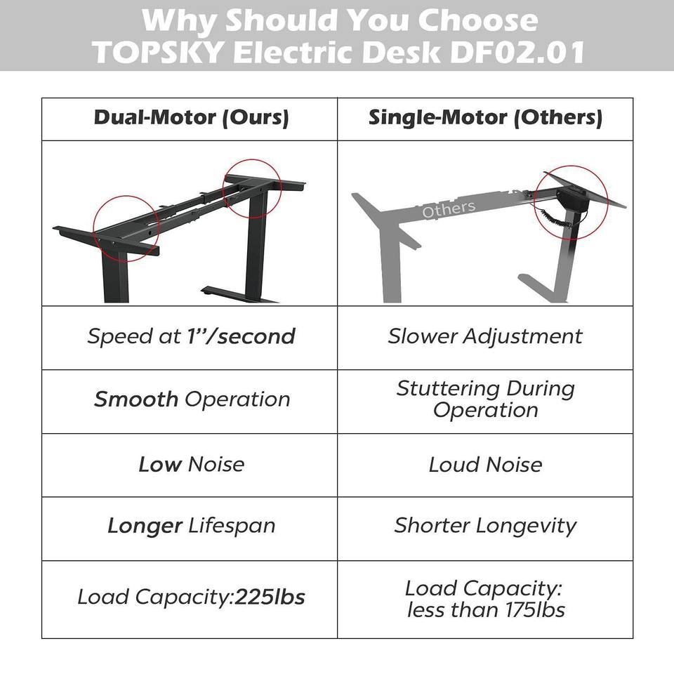 Base de Escritorio Eléctrica Ajustable en Altura con Doble Motor, Soporte Telescópico para Escritorio de Pie, Blanco, Negro, Marrón Oscuro, para Dormitorio o Estudio
