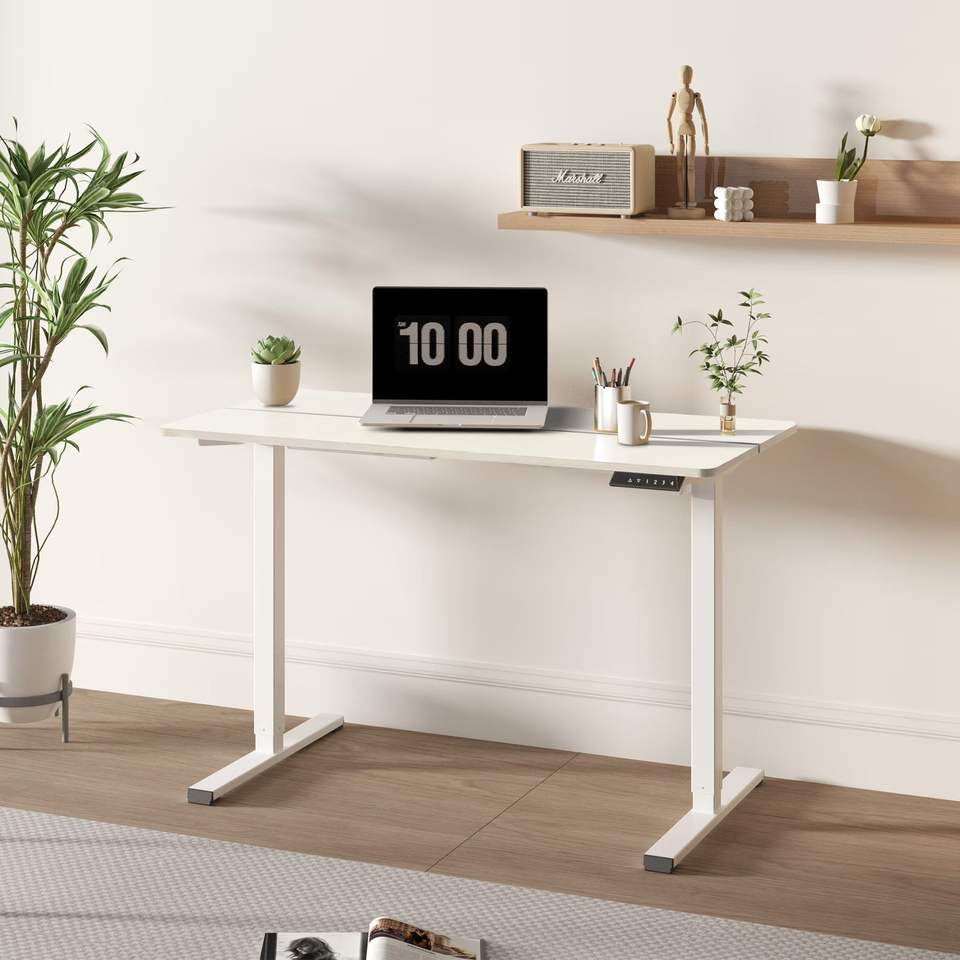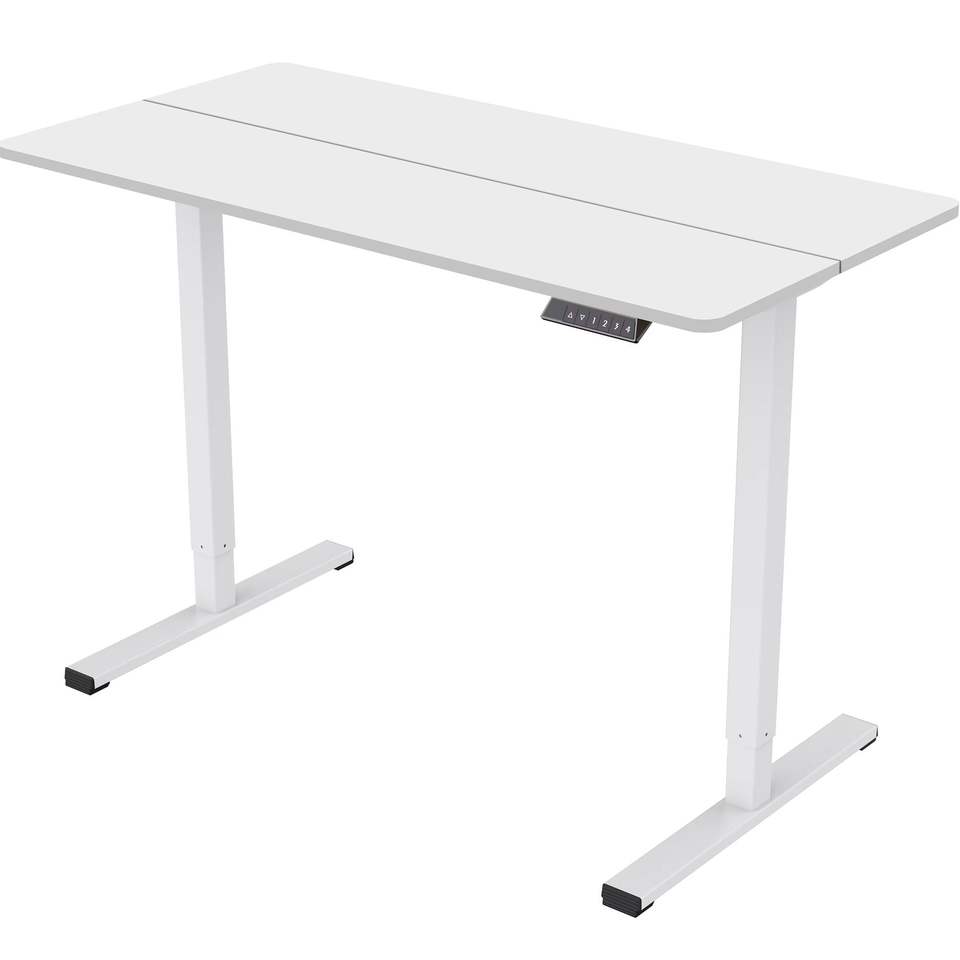 Estación de Trabajo para Oficina en Casa, Escritorio Eléctrico Ajustable en Altura con Tablero de Dos Piezas de 55 x 2, Opción de Trabajo Sentado o De Pie