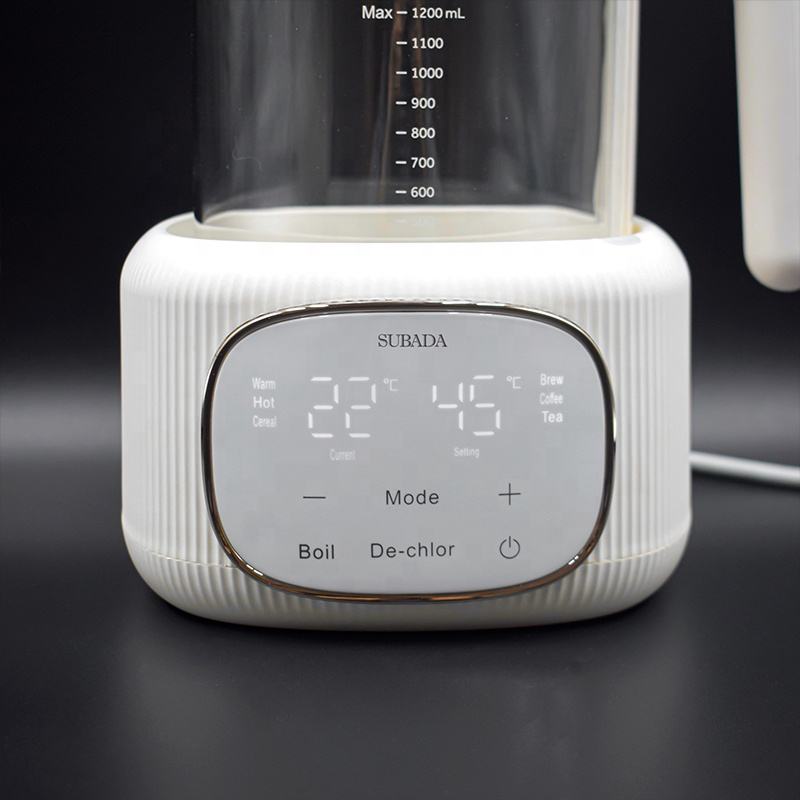 Hervidor Eléctrico para Café, Té, Agua Caliente, Calentador de Leche para Bebés, con Control de Temperatura, Jarra de Vidrio, Descloración, Placa Calefactora de Acero Inoxidable 316, 1.2 L