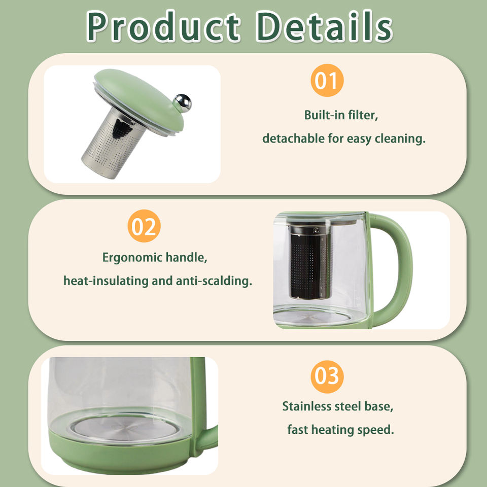 Hervidor Eléctrico de Vidrio Multifunción, Tetera 2026 de Tendencia, Control de Temperatura, Apagado Automático, Rotación de 360° para el Hogar
