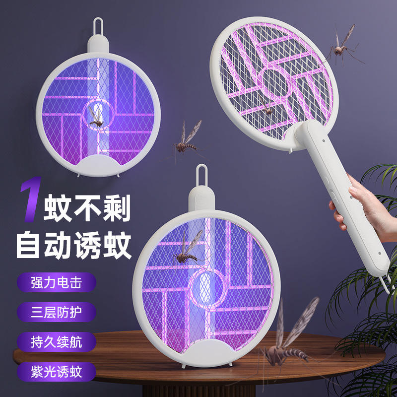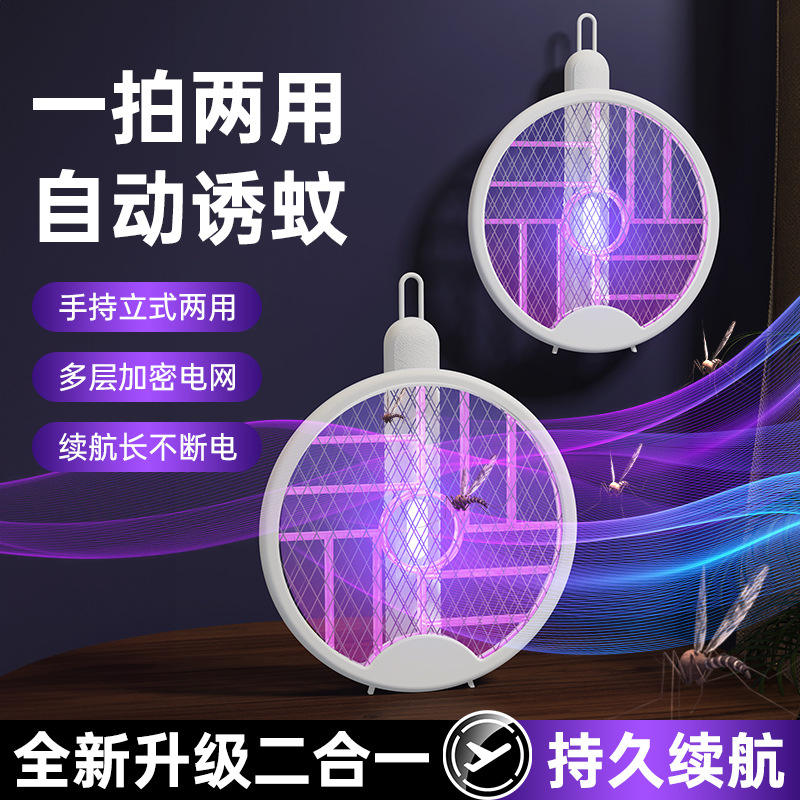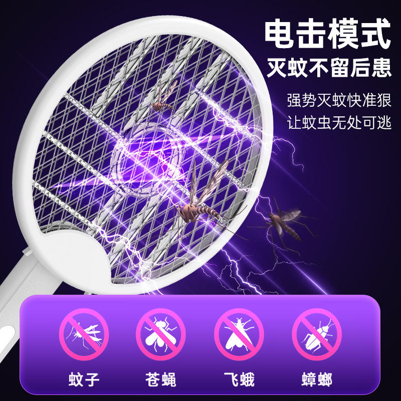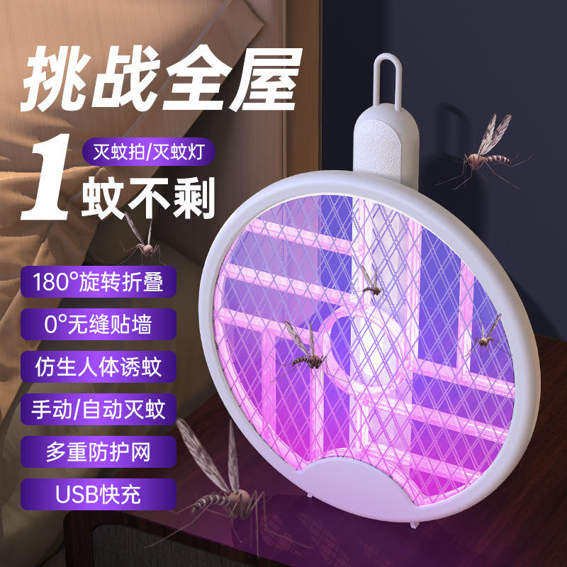 Matamoscas eléctrico recargable 2 en 1 plegable con luz morada para mosquitos y moscas, uso doméstico