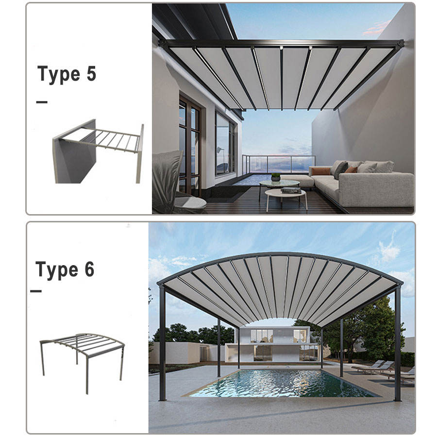 Pérgola eléctrica motorizada de PVC, impermeable, de techo deslizante de aluminio