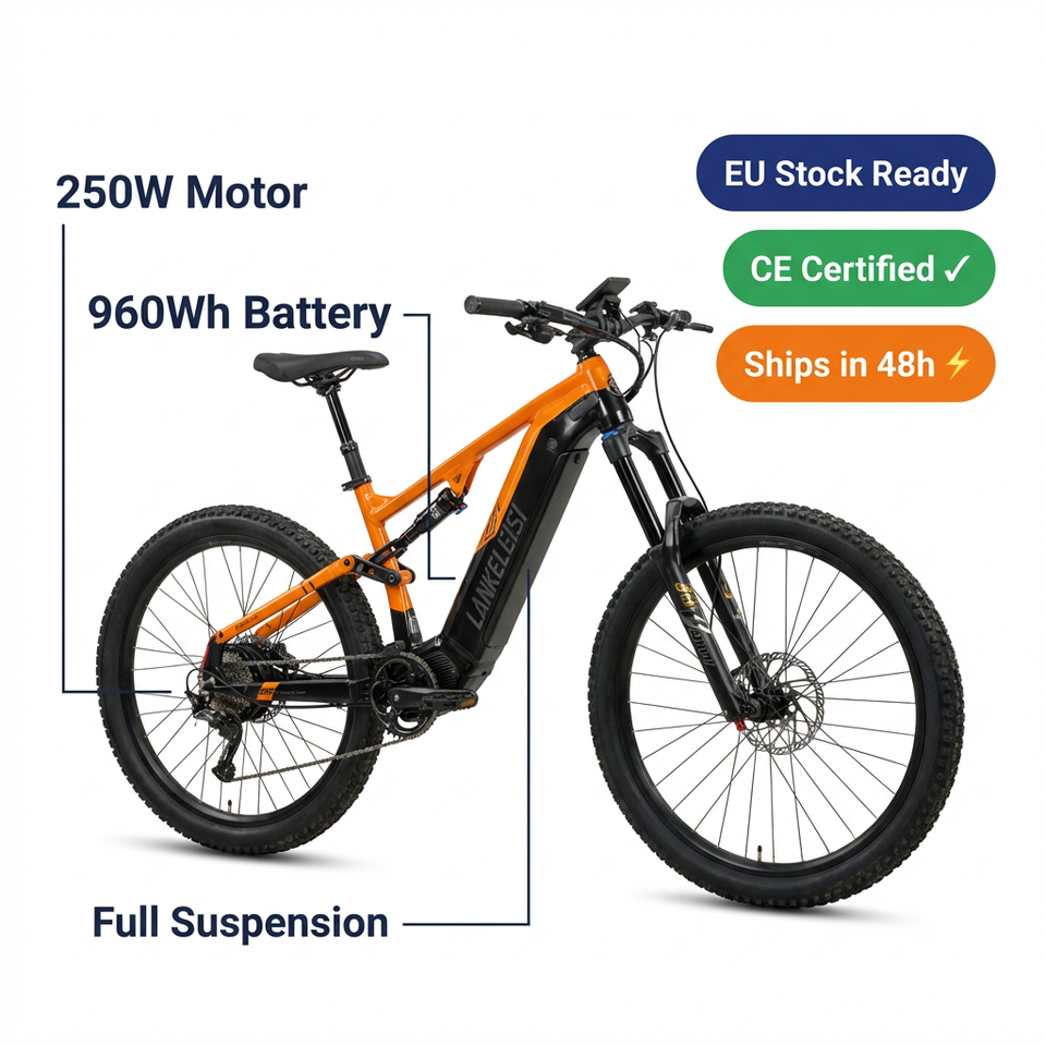 Bicicleta Eléctrica de Montaña de 29 Pulgadas con Suspensión Completa, Batería Grande de 960 Wh, 48 V, 20 Ah, 250 W, Sensor Dual, EMTB Todoterreno, Cuadro de Aleación de Aluminio