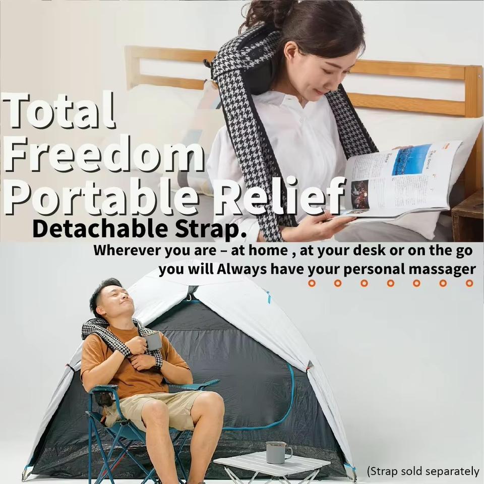 Masajeador Eléctrico Multi-Area para Cuello y Hombros con Movimiento de Amasamiento 3D, Terapia de Calor, Control de Tiempo y Batería de 2000mAh