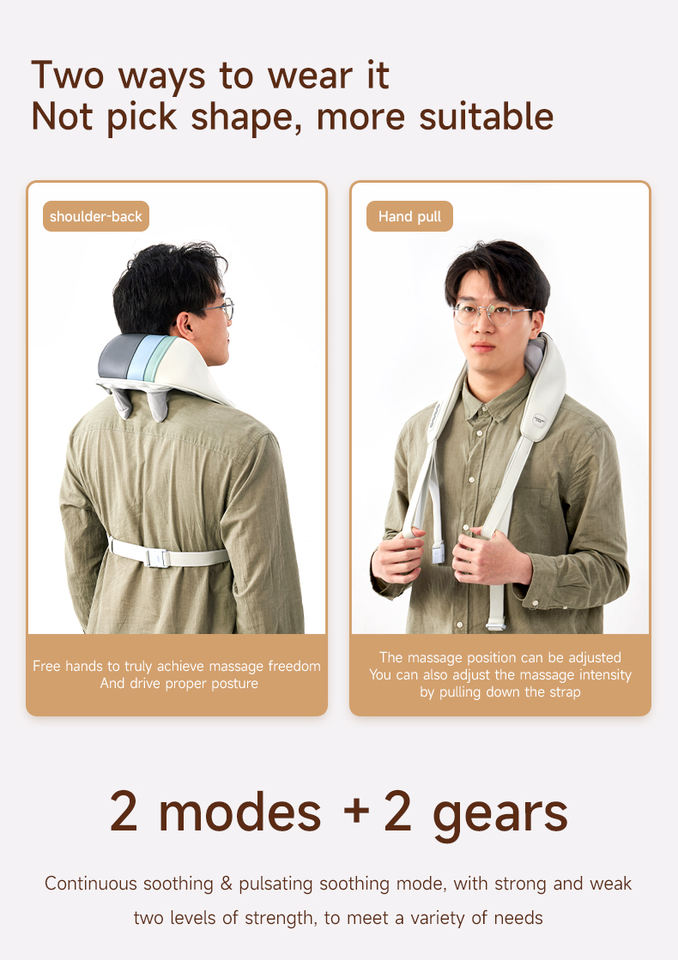Modos:2 niveles de intensidad, 2 modos de masaje de amasamiento