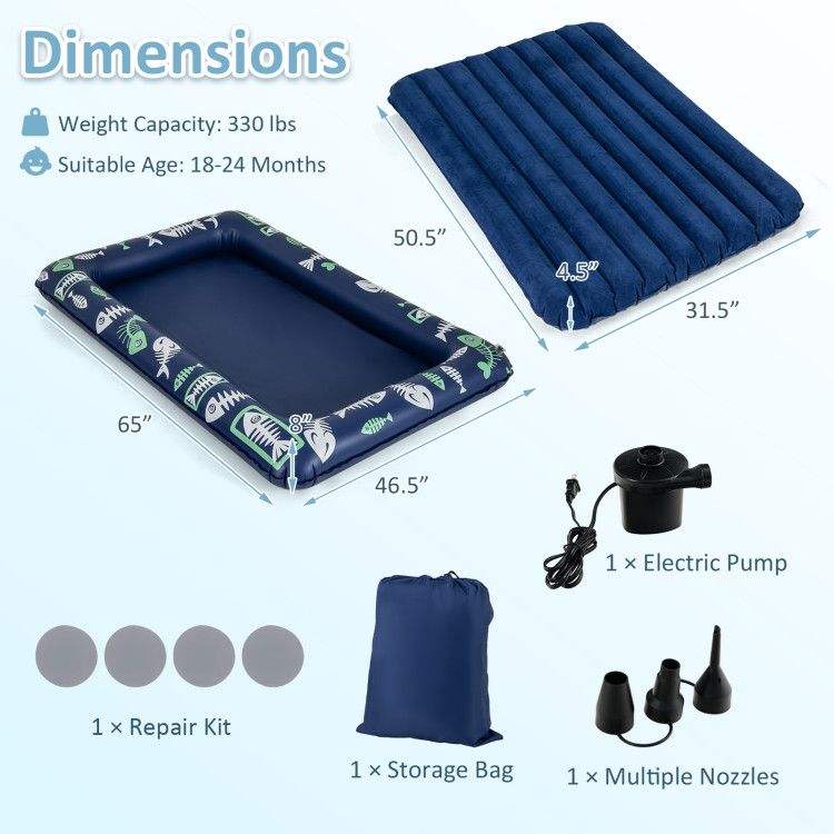 Cama Inflable de Viaje con Bomba Eléctrica para Niños Pequeños, Rieles Elevados, Accesorio para Colchón de Aire